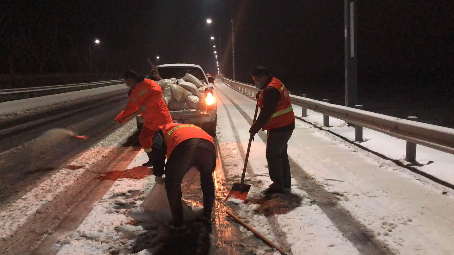 在開發區、徐圩新區、灌云臨港產業區的各個區域,到處都是集團綠化保潔人的最美身影,他們在各單位黨員先鋒隊、青年突擊隊的配合下,帶上融雪劑和作業工具,發揚不怕艱苦、連續作戰、敢打敢拼的工投精神,對交通要道、橋梁、彎道等重點防滑路段進行清雪防凍處理,鋪灑融雪劑40余噸,為疫情防控期間車輛行人出行安全增添一份保障。