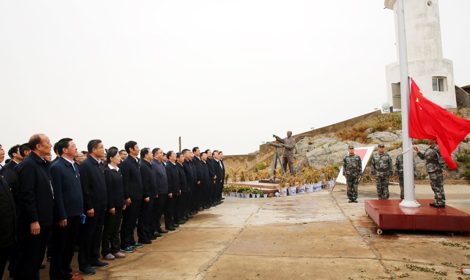 為進一步踐行“不忘初心、牢記使命”主題教育,追尋“人民楷?!蓖趵^才、王仕花夫婦的守島精神,10月10日,集團公司黨委書記、董事長楊龍,總經理胡建明等黨委領導班子成員與機關部分黨員、各單位黨內先進代表等共100人,冒雨赴江蘇省干部黨性教育基地——開山島,開展“學習人民楷模王繼才、踐行初心使命勇擔當”黨性教育活動。 在面積只有兩個足球場大的開山島上,全體黨員參觀了王繼才同志生前工作生活過的場所,看望慰問王仕花和守島民兵,舉行莊嚴的升國旗和重溫入黨誓詞儀式。在王繼才先進事跡展覽室,一件件實物和一幅幅圖片,從不同角度、不同側面生動的再現了王繼才“島就是家、島就是國”,扎根海島、獻身海防的先進事跡和奉獻精神?;顒悠陂g,大家還觀看了紀錄片《守島32年》,認真聆聽了王仕花講授的關于守島衛國32年,用無怨無悔的堅守和付出,在平凡的崗位上書寫了不平凡人生華章的微黨課。