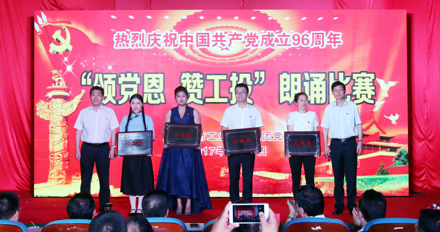 經過預賽選拔出的12支代表隊,用激情飽滿、聲情并茂的朗誦,抒發了工投人聽黨話、跟黨走、熱愛黨、獻身祖國的美好情懷,展示廣大工投人蓬勃向上的精神面貌和銳意進取、建設美好工投的信心和勇氣。經過一番緊張激烈的角逐,最終華茂、徐圩公司獲得一等獎,利海、灌西、青口、氨綸公司獲得二等獎,房地產、奧神新材料、神特新材料、供電、金橋制鹽、臺北公司分獲三等獎。