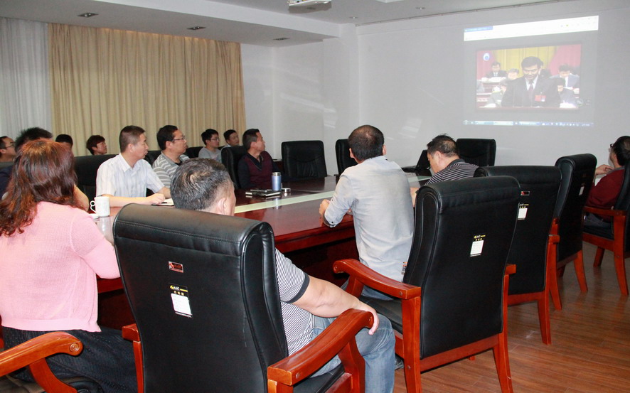 集團公司黨委委員張其海、王士華、戴鴻鳴、陳如軍等在集團總部收看了黨代會開幕盛況。