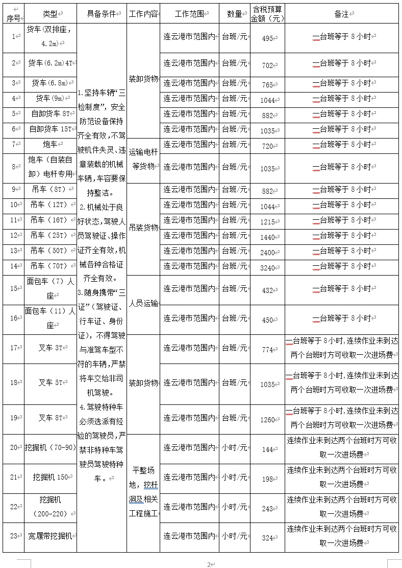 2.采購內容:連云港工投集團供電工程分公司機械、車輛租賃