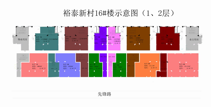 租賃物(裕泰新村16#樓)位于連云港市開發區花果山大道555#,總建筑面積為5665.51平方米,樓層主體為6層框架結構。16#35層為居民住宅區域;1、2層為門面用房,共計12套。