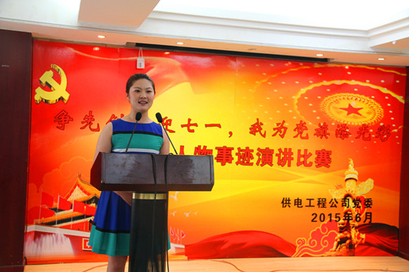 6月15日下午,公司在淮鹽大酒店三樓會議室隆重地舉行了“爭先創優迎七一,我為黨旗添光彩”先進事跡演講比賽。公司8個代表隊,經過一個多小時激烈的角逐,徐圩供電所的金陽演講的《平凡鑄就輝煌》榮獲一等獎。機關、灌西供電所選手獲得二等獎,青口供電所、臺北供電所、臺南供電所選手獲得三等獎,宋跳農場、巨龍市場選手獲得參與獎。(陳捷)