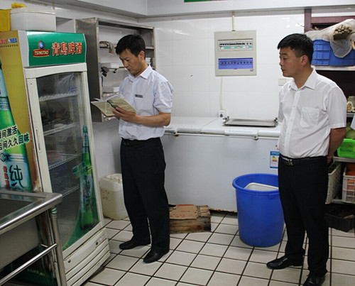 “十一”小長假即將來臨,為進一步加強安全生產管理,尤其是食品安全和消防安全,酒店總經理伏運余、副總楊帆攜質檢經理周洪近等綜合部員工特于9月30日展開國慶節前安全大檢查。