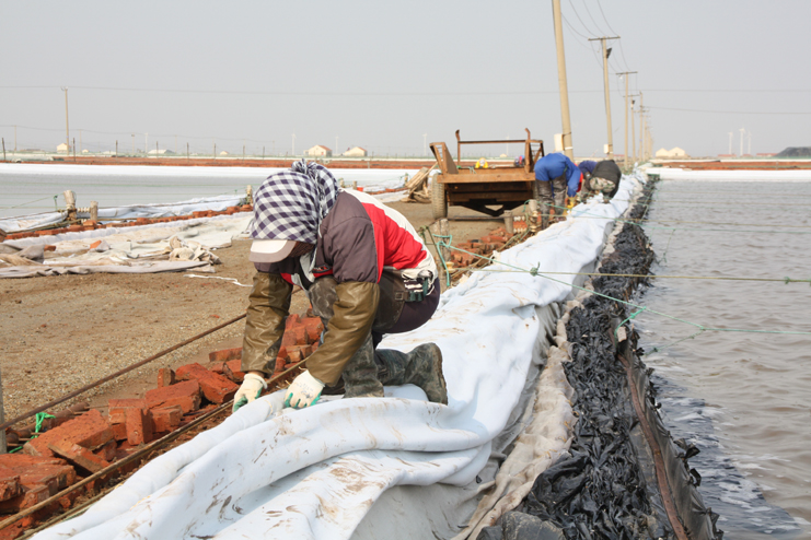 淮鹽歷史悠久、源遠流長,色白粒大、質量上乘,在全國享有較高知名度,曾被譽為“東方明珠”。日曬制鹽公司為了傳承淮鹽歷史,打造鹽業生產品牌,積極推進制鹽生產工藝創新,利用原來的150公頃的海水制鹵灘地資源,結合規?;?、標準化的礦鹵日曬制鹽結晶區的生產條件,采用傳統灘曬海鹽生產工藝,進行分散制鹵,提制飽和鹵水,輸送到日曬制鹽結晶區進行集中結晶生產,達產后,將年產高品質原料海鹽5萬噸。據了解,食用原料海鹽基地結晶區選址在新河制鹽分公司的七班和八班一期,目前,該公司對八班一期結晶池進行全面固化,對原先的下馬格進行維修整理灌池,先讓八班的一期結晶池全部實現灌池投產。(季興勝)