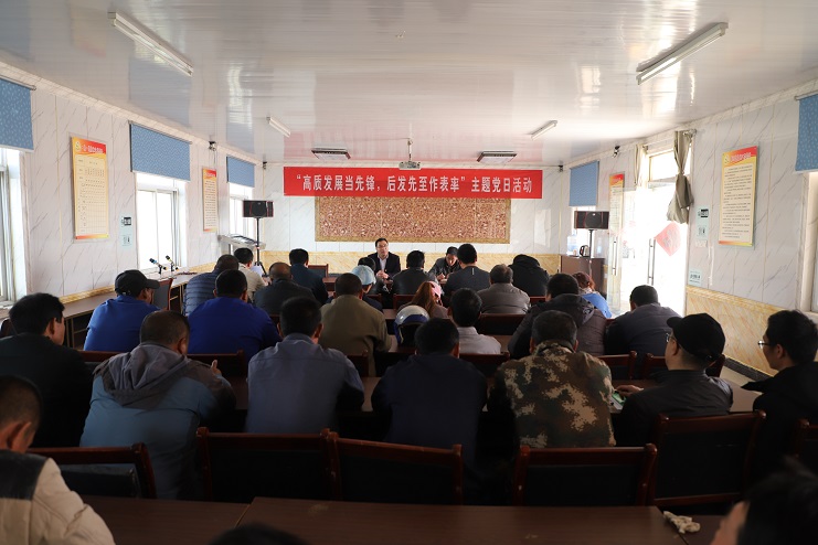 機關黨總支圍繞機關工作特點,組織黨員開展重溫入黨誓詞、老黨員為新黨員贈送新黨章、佩戴黨徽活動,并圍繞如何“高質發展后發先至”這一要求做好服務生產工作進行了座談交流。
