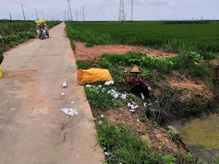 近期正是稻田噴灑農藥的高峰期,許多承包戶將噴灑稻田的藥瓶用完后隨意丟棄在田埂邊、路邊,這不僅會污染居住環境,影響土壤、水體的生態平衡,還會對周邊池塘養殖安全造成一定的隱患。為此,該公司專門成立“農田衛士”志愿服務隊,深入田間地頭撿拾溝渠廢棄農藥瓶、塑料袋、漂浮物等垃圾,進行集中無害處置。與此同時,加大宣傳力度,使廣大承包戶認識到亂扔廢棄農藥瓶的危害,勸導承包戶不要隨意丟棄農藥垃圾,積極參與到消除農藥瓶污染的行動中去,形成全民動員、人人參與的良好氛圍。