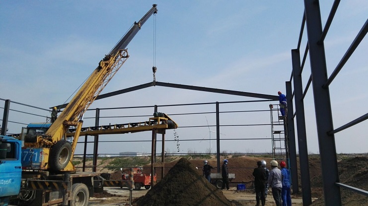 為了擴大有機肥項目生產場地、解決生產庫存產品的堆放以及落實好翻堆發酵工序,綠淮公司積極協調全員參與,于4月中旬正式興建鋼結構廠房和混凝土場地鋪設工作。目前廠房工程進展非常順利,預計兩周內竣工。(綠淮 張寶同)