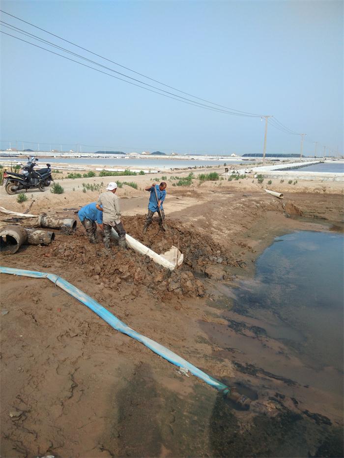 由于灘內土塘老出籠銹蝕損壞,淤泥堵塞,不便于土塘水互相調用,原先班組主要是用機泵進行調水,增加了費用的支出,因此新河制鹽公司對16個班組的原有土塘節制全部更換成塑料彎頭,這種新型節制在使用中不易堵塞,封閉好,操作簡便,工人們正在按照公司的要求搶時間把彎頭裝好。(新河制鹽趙斯中)