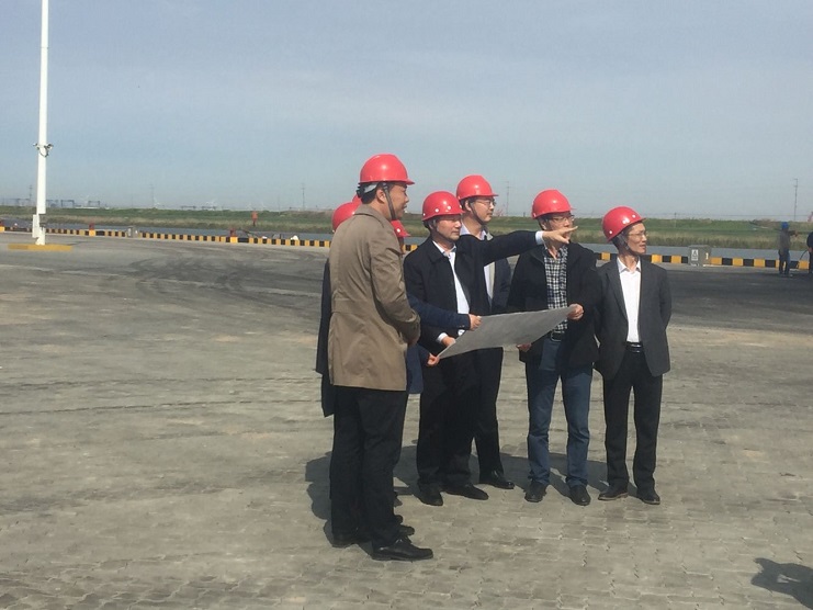 宵洋物流公司碼頭驗收在即,投資公司領導高度重視,5月5日下午,公司總經理李國文帶領領導班子成員,提前親臨宵洋碼頭現場指揮驗收工作。(宵洋物流公司季汝磊)