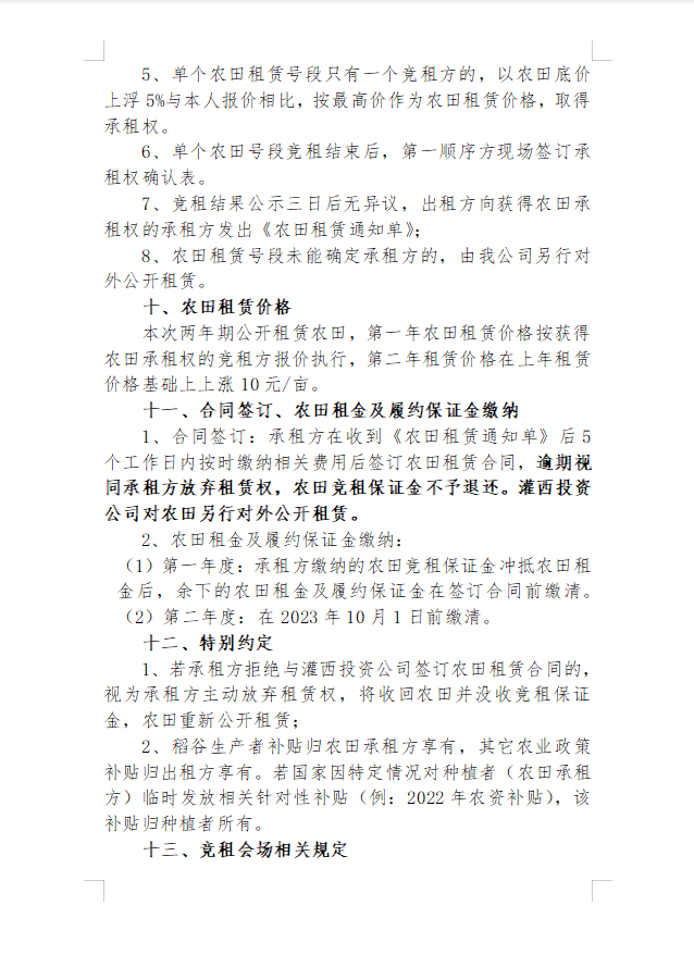 2022年灌西投資公司八十四萬二區農田公開競租公告