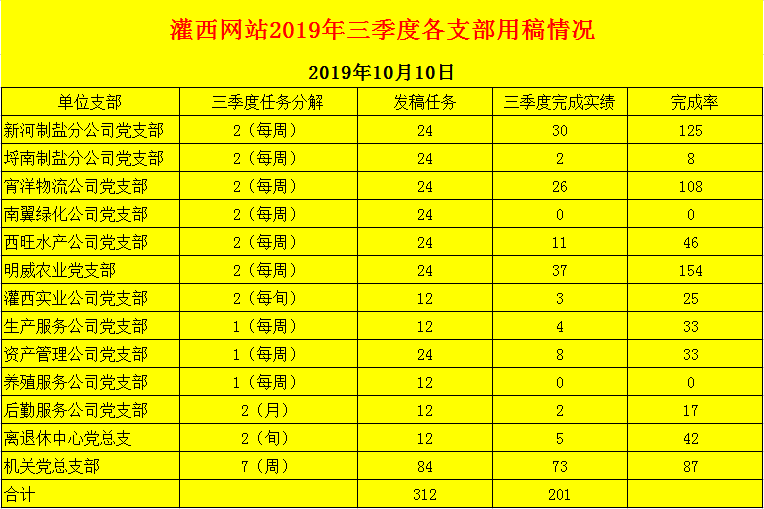 灌西網站2019年三季度各支部用稿情況