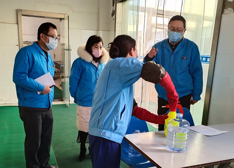 復工生產后,對進廠職工進行體溫測量,確保復工職工體溫低于37.3℃;要求所有進廠職工必須佩戴口罩,防止交叉感染;統籌安排職工實行分區域、分時段就餐;每天對廠區辦公樓、車間、門衛室、食堂等區域進行消毒處理2次,充分做好廠區衛生消毒工作。(金宣)