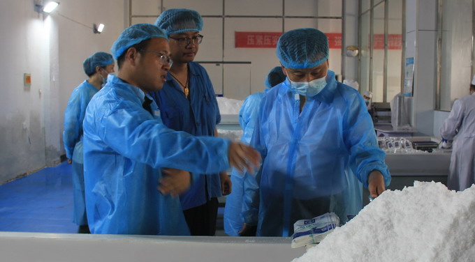 檢查組一行實地查看了生產車間、化驗室、庫房等,對我公司的生產過程記錄、檢驗記錄、人員培訓記錄及質量管理制度等臺賬進行了檢查;檢查組對我公司的食鹽安全管理工作給予充分肯定,并對下一步工作提出了建議和意見。(質管部)
