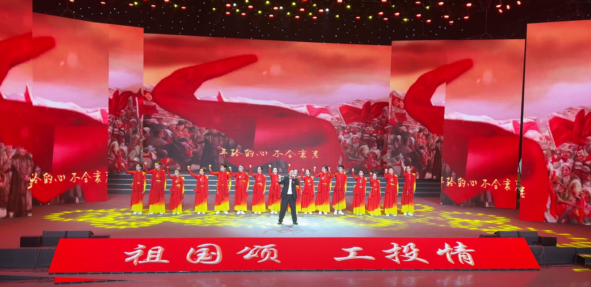 在演出舞臺上,一曲《紅旗飄飄》以夢幻般的旋律和激昂的歌詞展現了對祖國母親的熱愛之情。演出人員以高亢嘹亮的歌聲和美輪美奐的舞蹈,把對祖國母親的深情厚意演繹得淋漓盡致,讓現場的觀眾熱血沸騰、心潮澎湃?!都t旗飄飄》不僅歌頌了祖國的偉大,也抒發了廣大職工愛國愛企愛崗的深深情懷。(金鹽宣)