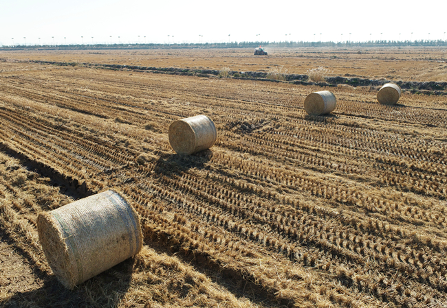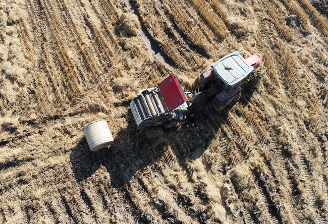 連日來,在青口公司大新農場已收割完的田地里,4臺大型機械正在收割后的稻田里來回穿梭,每過短短幾分鐘時間,機器就能“卷”出一捆打包好的秸稈。壓實打捆后的秸稈錯落排放在田間,成了豐收后的新景觀,也是我公司生態農業發展跨步向前、職工群眾生活環境持續向好的縮影。