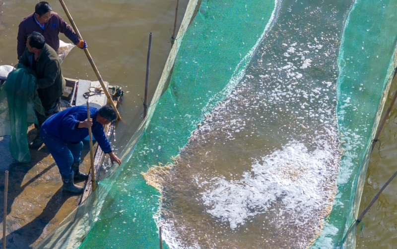 近日,三洋分場養殖區脊尾白蝦陸續起捕出售。據了解,脊尾白蝦畝產約60-120斤,比去年同期產量略高,均價在15-26元。(三洋分場)
