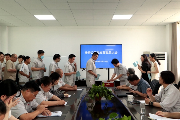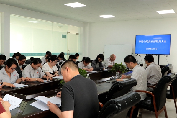 7月11日上午,神特公司黨支部召開黨員大會,公司全體黨員參加會議,討論和表決王勇等8名預備黨員轉正事項。會議由公司黨支部書記嚴成主持。