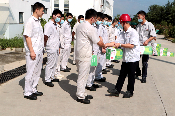 7月30日上午,公司黨支部書記、總經理韓立新代表公司開展夏季送清涼活動,為全體職工送上組織的關懷和貼心準備的牛奶等防暑降溫慰問品,送來一縷清風。(神特宣)