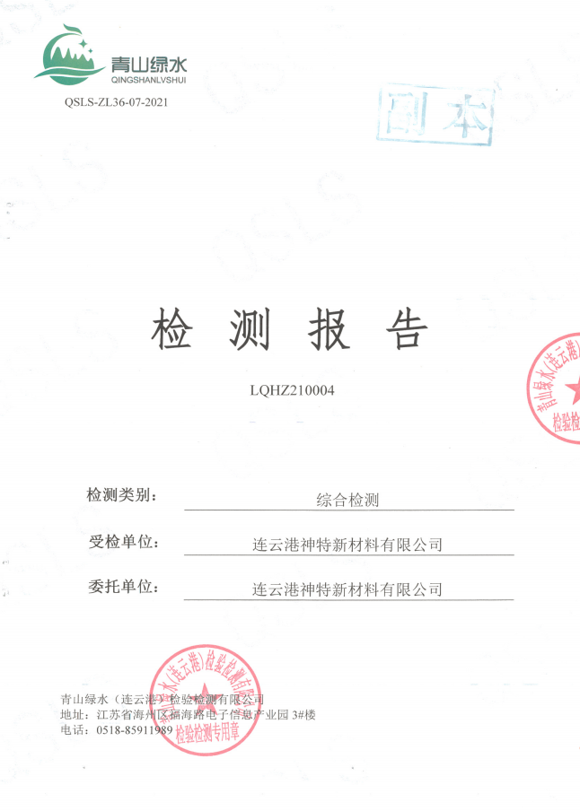 神特公司檢測報告公示