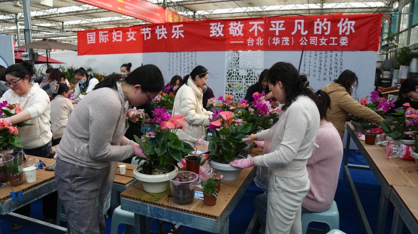 ? ? 情暖三月,巾幗芳菲相競妍。在“三八”國際婦女節來臨之際,為展現公司女干靚麗風采,豐富文化生活,3月6日下午,臺北(華茂)公司工會組織50余名女職工代表在市振興花卉城開展“國際婦女節快樂 致敬不平凡的你”慶婦女節插花活動,展現新時代女性風采。