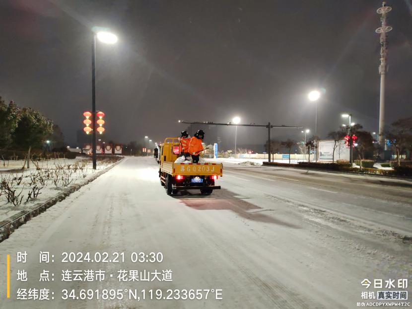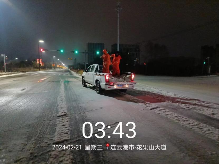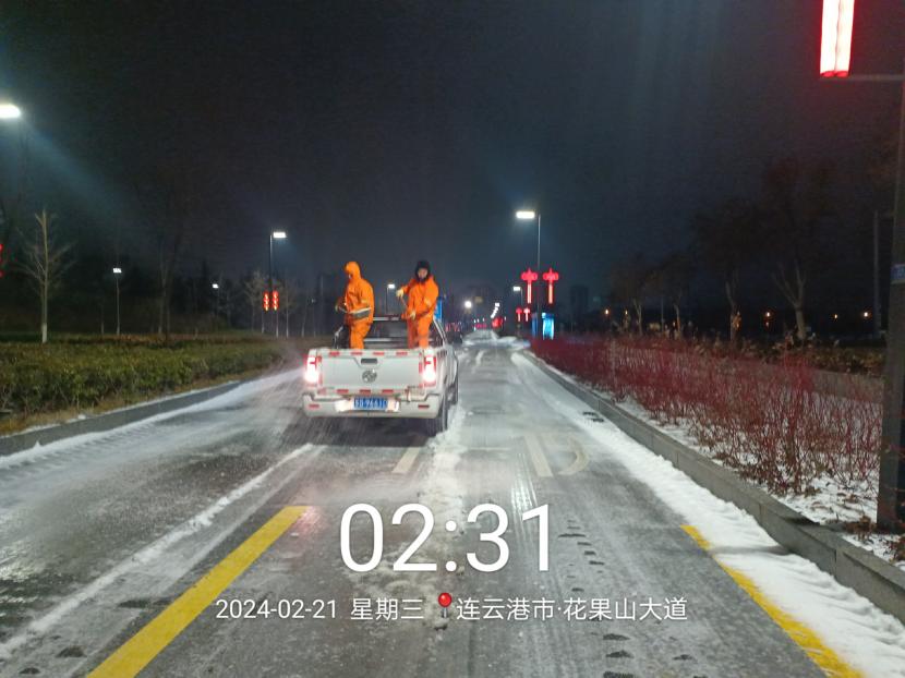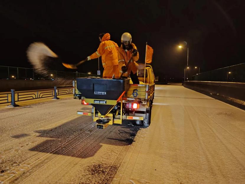 受寒潮影響,2月20日下午,港城普降“冰雪+冰?!?,投資公司第一時間啟動惡劣天氣應急處置預案,道路保潔、市政養護、后勤保障等戰線的干部職工以雪為令,在重點區域、重點路段、坡道、橋梁、涵洞等結冰路段進行撒鹽融雪融冰作業,全力以赴除冰雪、防事故、護平安,為市民群眾出行一路“護航”。