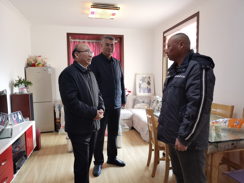 ? ? ? ??丁銳先后來到了困難職工杜秀文、徐松保、張明雙,困難黨員王愛軍等家中,為他們送去米、油等生活用品和慰問金。每到一戶,丁銳都與他們拉家常、聊近況、問冷暖、送祝福。