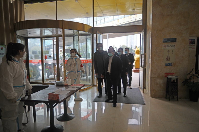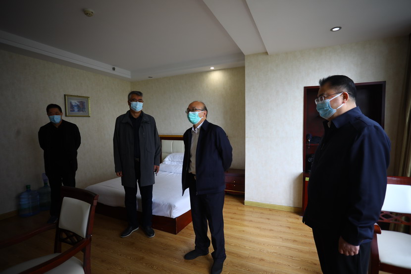 進入辦公區后,丁銳一行對臨時辦公區的辦公氛圍表示贊賞,各部門門牌張貼到位,管理制度上墻,特別是疫情防控制度全面到位。同時隨機來到工作人員宿舍,檢查了內衛,對工作人員表示了慰問。
