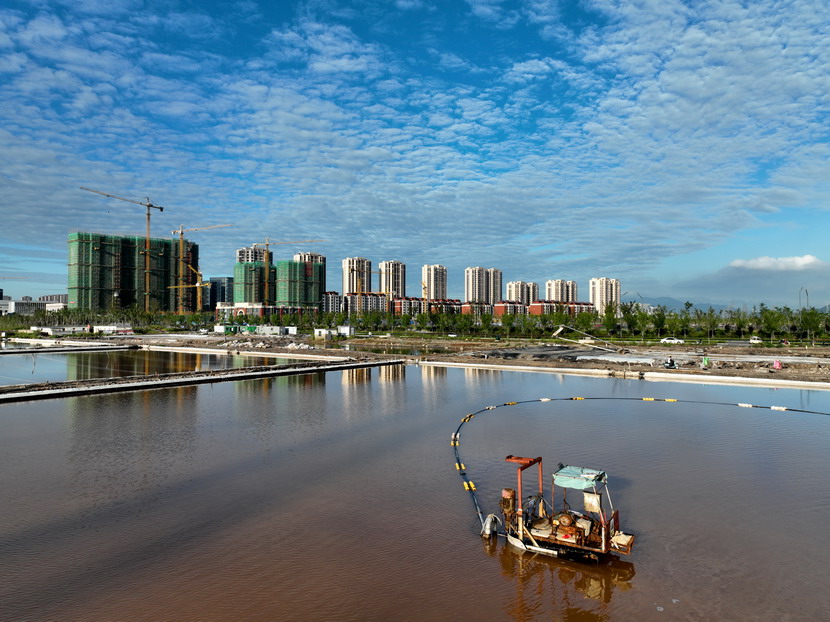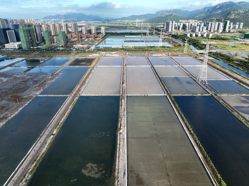 9月21日,從空中俯瞰海州灣公司的鹽田,猶如一塊塊調色板。