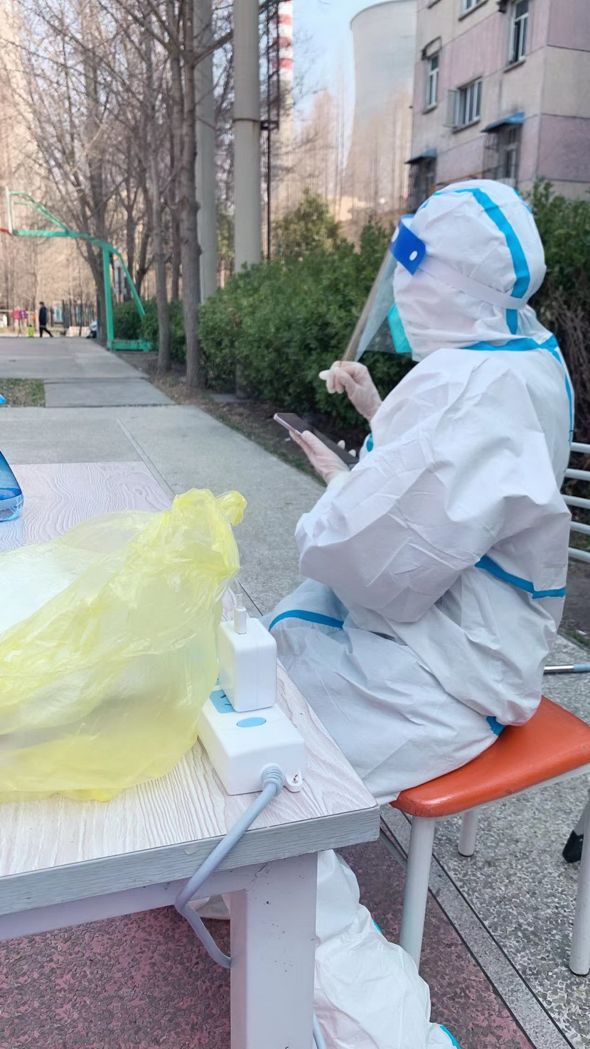 3月8日,臨時黨支部成立,黨員志愿者們隨即奔赴社區核酸檢測現場。當天,志愿者們穿上防護服?!澳愫?,請戴好口罩,出示健康碼?!薄澳愫?,這邊人比較少,請往這邊走,保持一米距離?!本S持現場秩序、檢查健康碼、登記核酸個人信息……志愿者們堅守在各自責任區,細心、耐心回答居民們的各類問題,忙得連喝水的時間都沒有。細致周到的服務、無私的奉獻精神,得到了社區居民們的一致認可和贊揚。