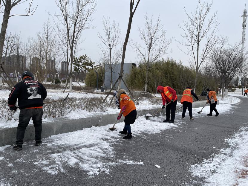 ? ? 此次鏟冰除雪行動仍在進行,鏟的是責任,暖的是人心。經過志愿者的共同努力,園內的積雪情況得到有效緩解。一條條整潔的道路給群眾送去的不僅是方便和安全,更是一份溫暖和正能量,志愿精神讓這份溫暖在大雪中不斷蔓延。