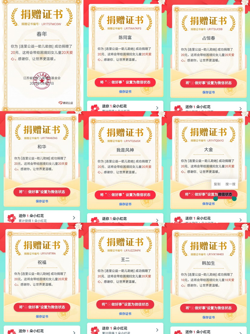 “99公益日”是響應國家9月5日中華慈善日號召,由騰訊公司聯合數百家具有公開募集資質的慈善組織共同發起的全民公益活動。近年來,在海州灣公司,傳播社會正能量、弘揚社會正氣的良好氛圍日益濃厚,涌現出撿數千元現金歸還失主的朱文健、幫扶救助中暑暈倒老人的王緒峰、免費理發多面手霍正鋼等等數名愛心職工。在“99公益日”募捐活動中,雖然公益平臺最低募捐金額1元即可,但是廣大職工盡力奉獻自己的一份力量,10元20元比比皆是,氣氛十分熱烈。大家紛紛表示,奉獻愛心、扶貧濟困是每個社會公民應盡的責任和義務,只要人人都獻出一點“愛”,就能形成“滴水成河、匯流成?!钡陌蹴缌α?/span>!