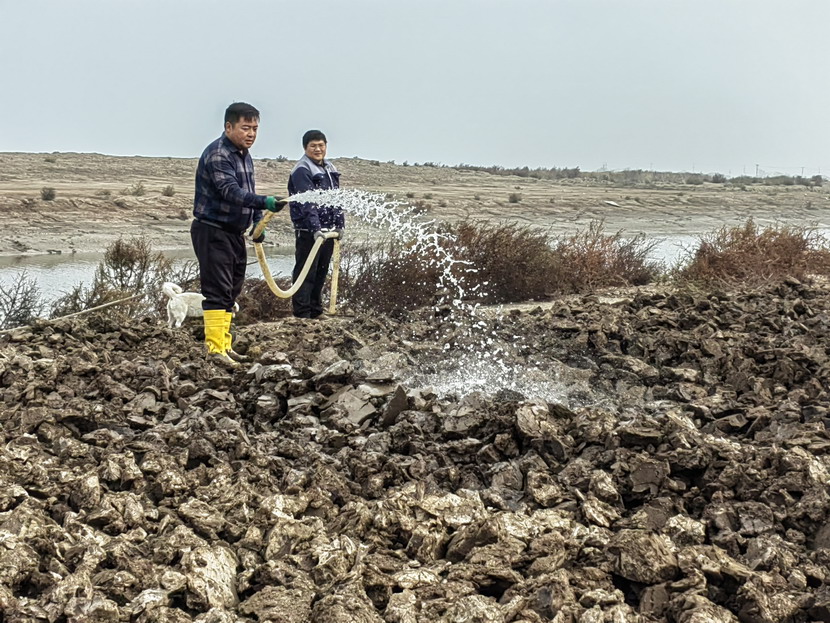據悉,此地塊原為鈣液生產單元,鹽堿度高,搞種植業難度大,荒廢已經一年多,為改良土地,推動鹽漬化土壤生態修復與開發利用,做好種植試驗,養殖分公司選址一塊3-5畝地塊先進行人工翻土,然后通過過水壓鹽,大水洗鹽等方法弱鹽,以達到土地利用的目的。在復墾改良土地同時還在積極調研尋求耐堿植物以適應該鹽堿地原土種植。