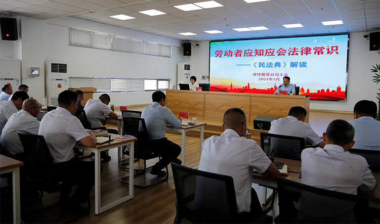 5月24日上午,徐圩投資公司工會在悅升環衛管理中心舉辦《民法典》專題培訓班,特邀市總工會法律工作部部長易懷麗為職工解讀《民法典》基本內容,同步開展市總工會“勞動法治宣傳進企業”活動,推動職工法律培訓與法律咨詢一體化開展,增強職工依法維權意識,規范依法從業行為。公司80余名干部職工一起參加培訓活動。