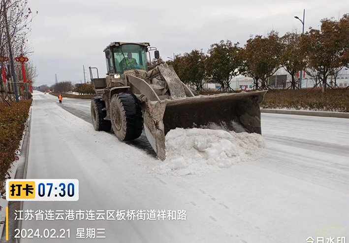 雪花紛飛,寒風凜冽,板橋工業園區內,除雪車、雪輥車等機械設備齊上陣,采取機械化與人工除雪相結合的方式,雪鍬、掃帚齊上陣,大家你鏟我除、干勁十足,以最快的速度清除板橋園區云港路、祥和路、瑞和路等交叉路口、重要地段冰凍積雪。